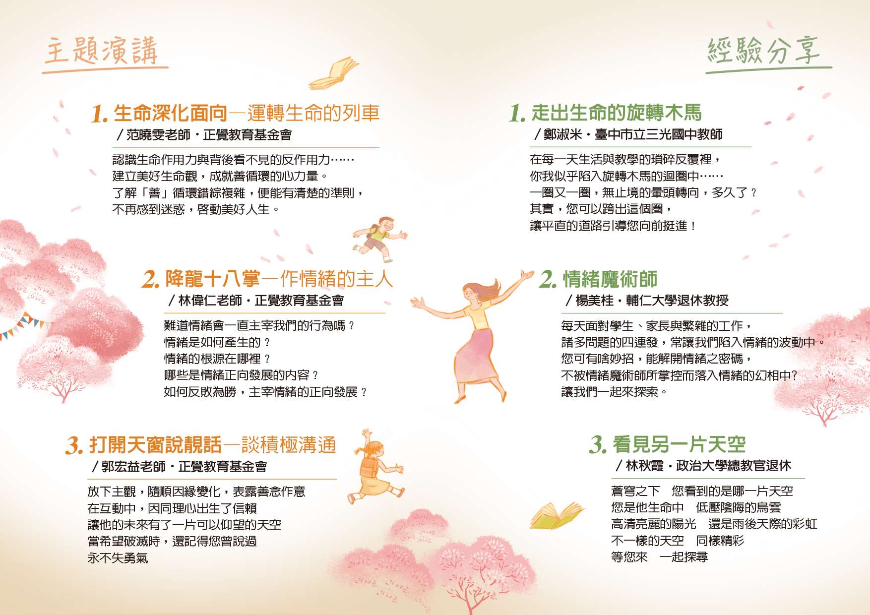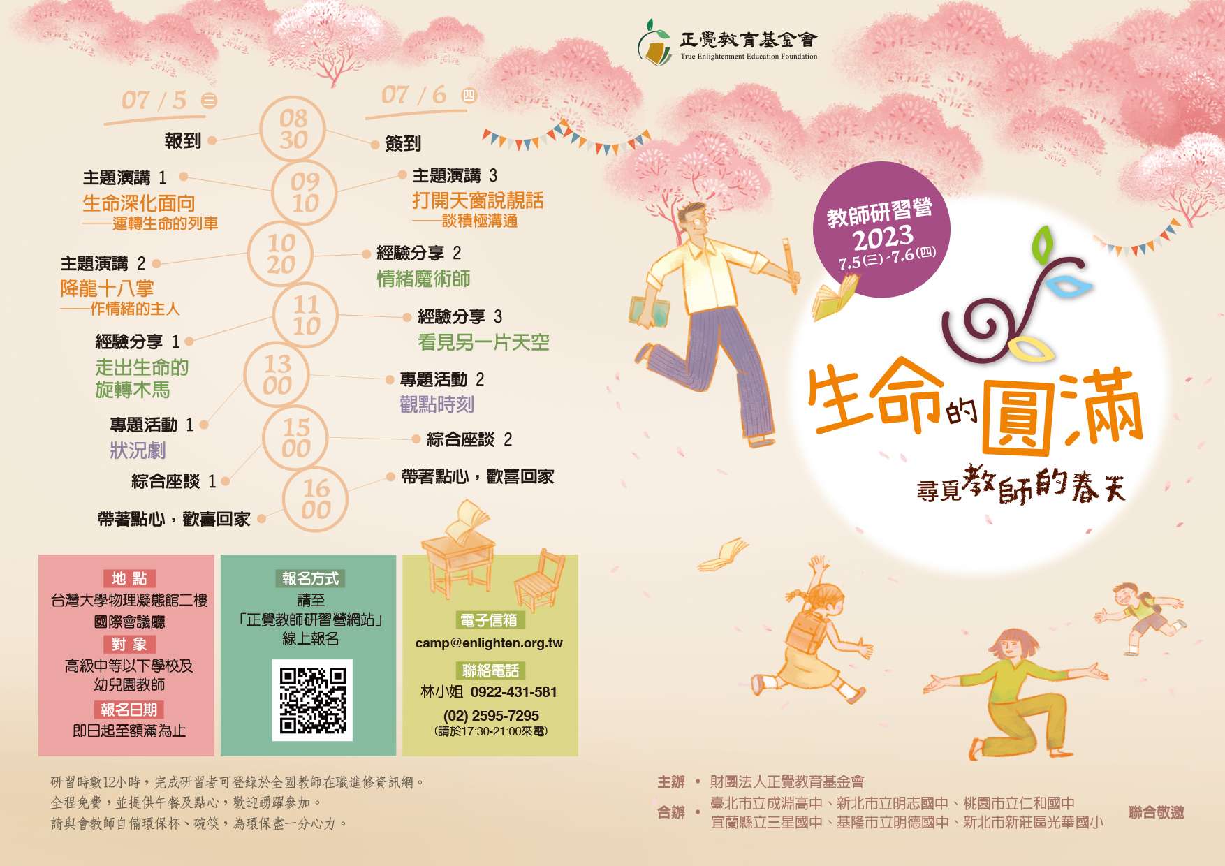 三、本校與財團法人正覺教育基金會合辦2023年生命教育「生命的圓滿——尋覓教師的春天」教師研習活動,規劃如下:
