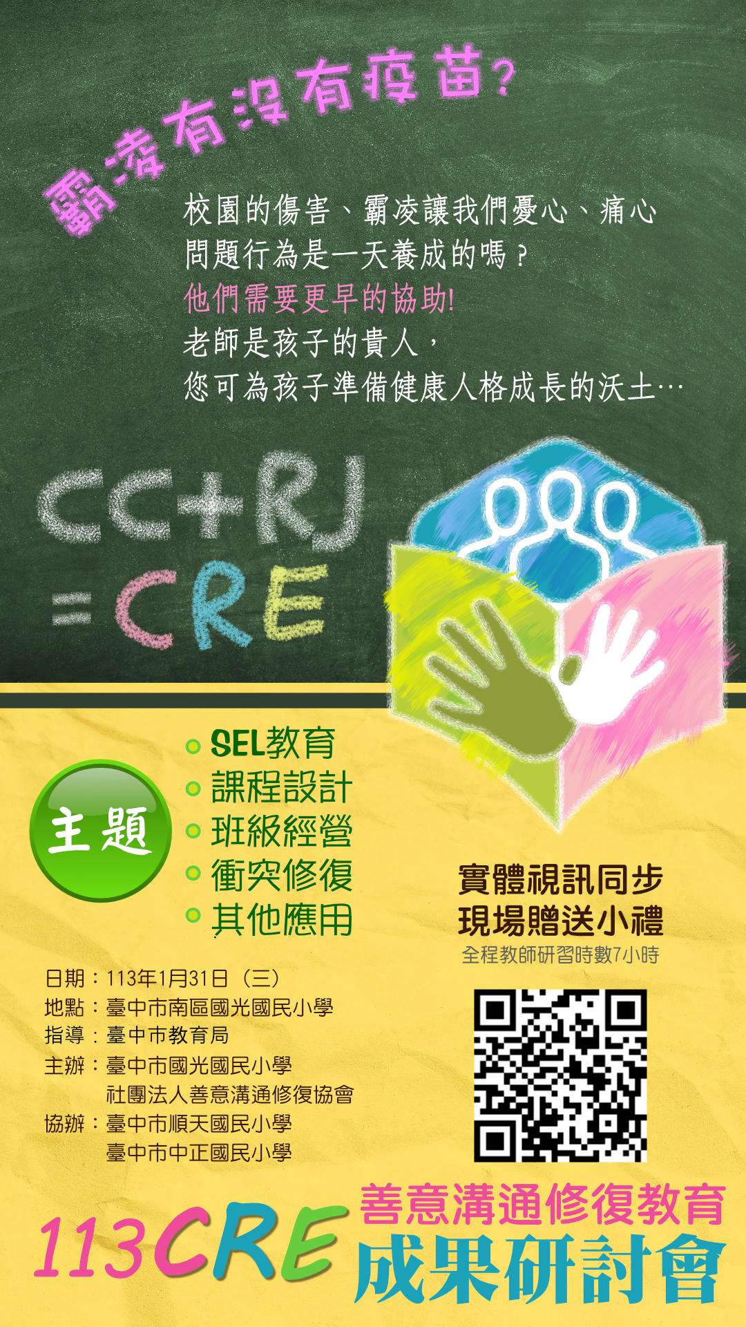 目的:分享善意溝通修復教育成果,增進教師班級經營、正向管教及溝通與情緒教育之專業知能。