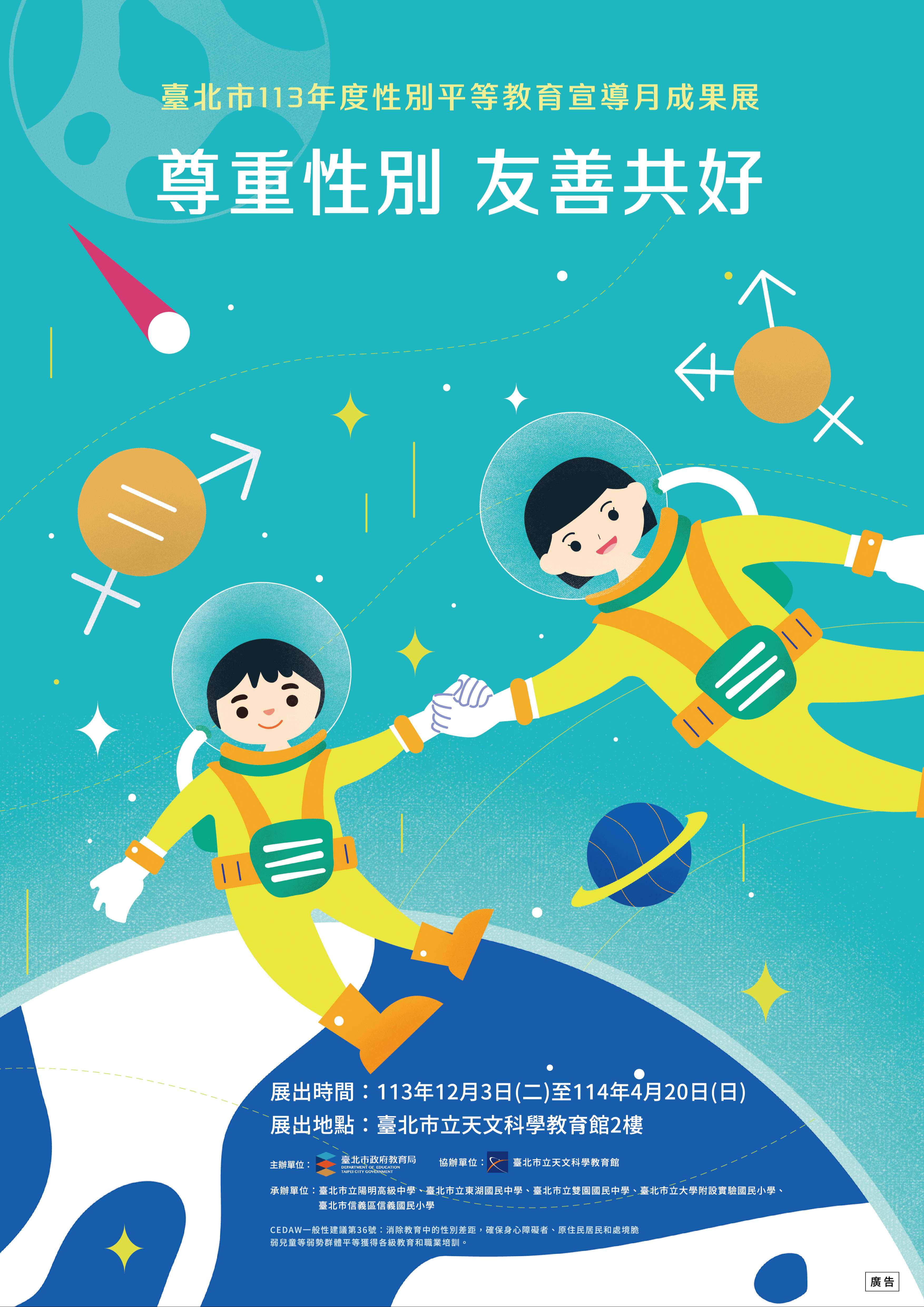 一、依據本市113年度性別平等教育宣導月「尊重性別 友善共 好」成果展實施計畫辦理。