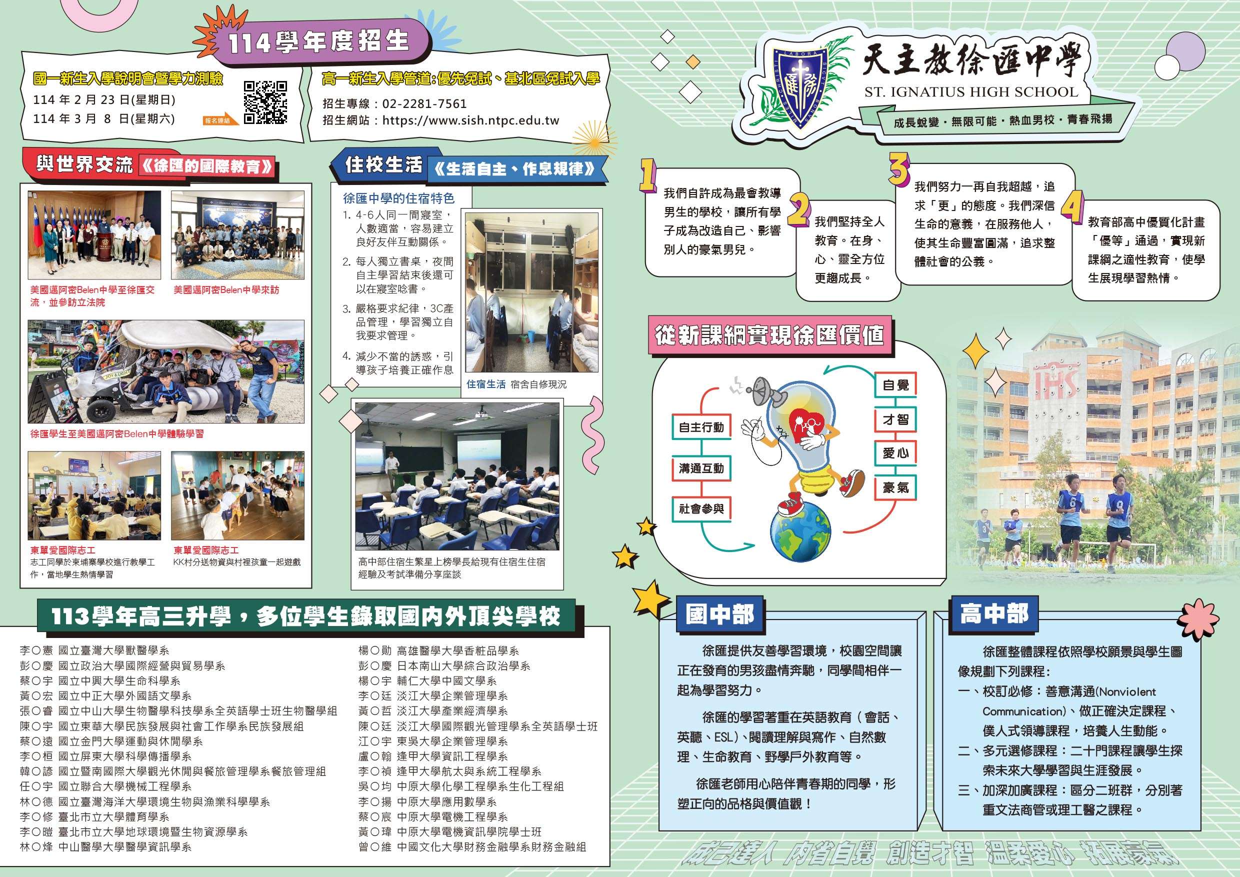 一、本校著重培育學生具備自覺、才智、愛心、豪氣四大能 力,歡迎貴校六年級男生及家長參加本校辦理之新生說明 會。