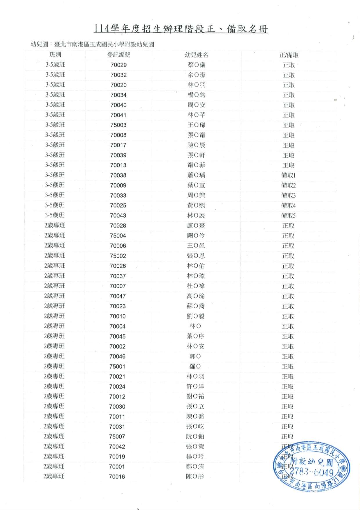 已錄取幼兒請務必於6/2(一)中午12點前,至招生E點通完成線上報到手續,並請務必於6/11(三)前至玉成國小->「熱門消息」->幼兒園專區或玉成附幼FB粉絲網頁連結填寫新生幼兒資料表單