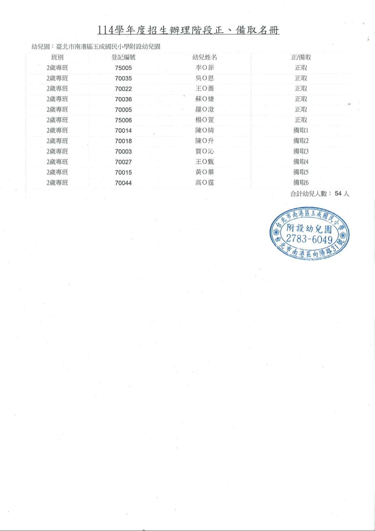 (四) 備取登記的結果也會是在登記時間截止後用電腦抽籤出順序,接在招生辦理階段的備取名單後面,並且依照5歲、4歲然後3歲的順序排列。