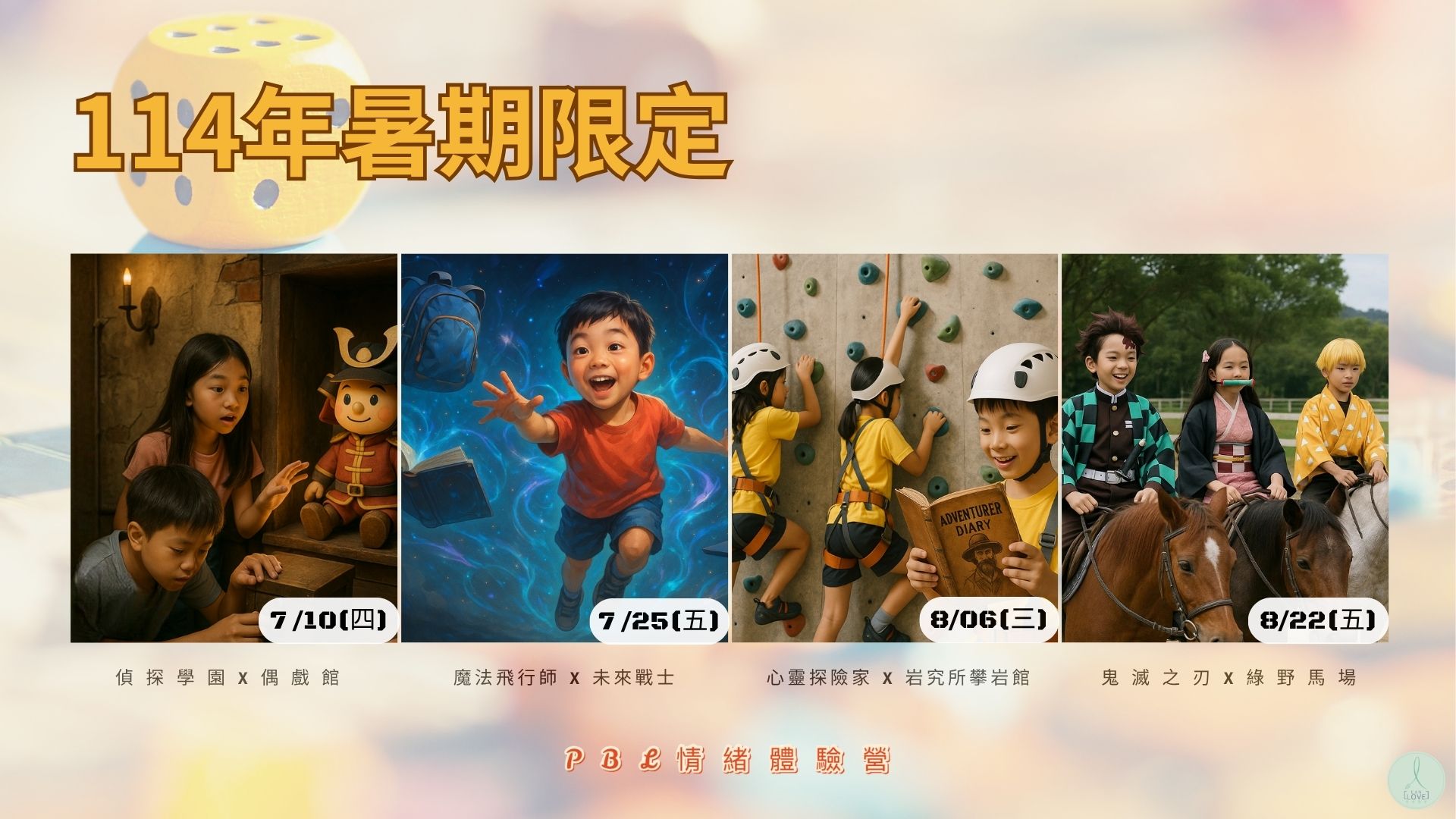 活動一:PBL 偵探學員 X 偶戲館日期|7月10日(四) 9:00-16:00報名|https://reurl.cc/5KEz4M內容|融合推理、藝術與文化,孩子不只能動腦解謎,還能動手創作,從遊戲中發現自己獨特的創意表達與無限潛力!